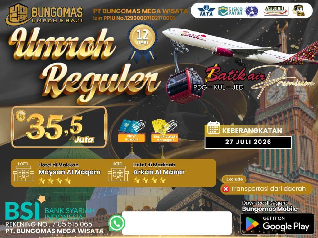 Reguler 12 Day 27 JULI 2026 Starting Padang ( All In Pasport + Vaksin )